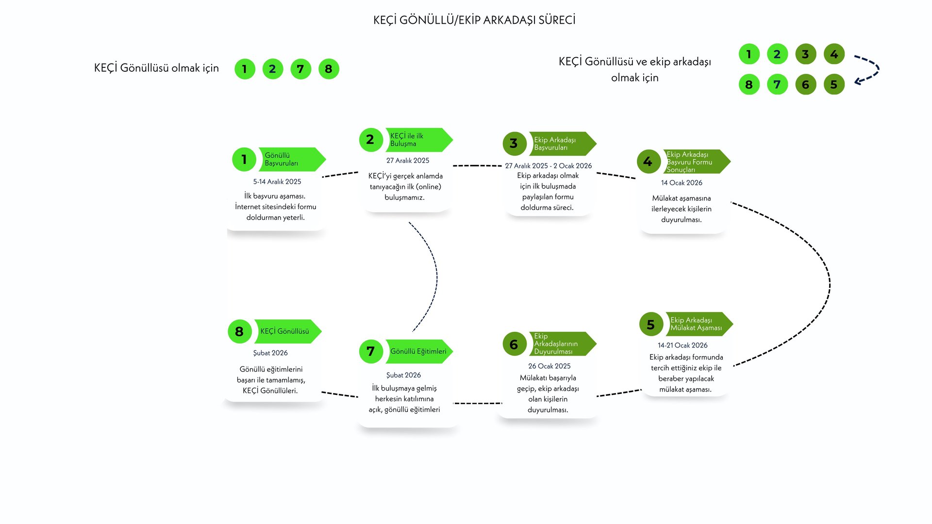 KEÇİ’nin düzenlediği ilk buluşmaya katılan ve Şubat ayında verilen gönüllülük eğitimlerini tamamlayan; atölyelerde, saha çalışmalarında ve etkinliklerde destek veren topluluk üyesidir. Esnek bir katılım modeliyle çalışır; zamanı el verdiğinde KEÇİ’nin farklı projelerine dahil olabilir. Gönüllüler, çocuklarla birebir çalışmaktan içerik hazırlamaya, saha lojistiğinden etkinlik desteğine kadar birçok alanda katkı sunar. KEÇİ Gönüllülüğü, sürdürülebilirlik esasına dayalı, tasarım, teknoloji ve bilim içerikleriyle eğitime erişim konusunda fark yaratmak isteyen herkes için kapsayıcı, esnek ve üretime açık bir katılım yoludur.